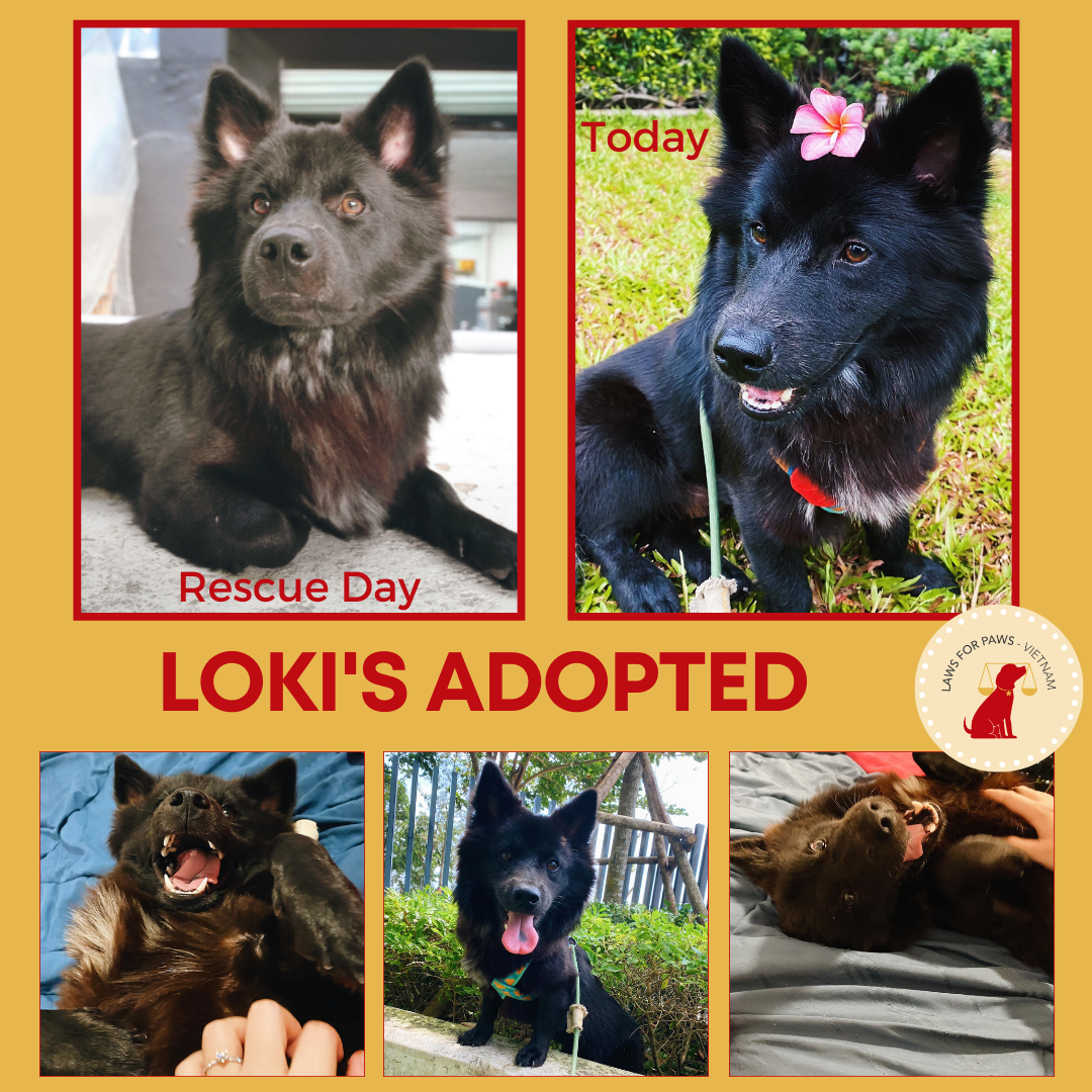 Loki is a beautiful mini Hmong dog who was rescued by Yim Bader during the extended lockdown in August/ September 2021. Sweet Loki was found on the street lost and confused. Yim did not want to leave him on the street so she lovingly kept him during the lockdown and he came to us at the Laws For Paws Vietnam shelter in February 2022. We are so pleased to announce that this beautiful boy has found his loving home and is certainly living his best life!