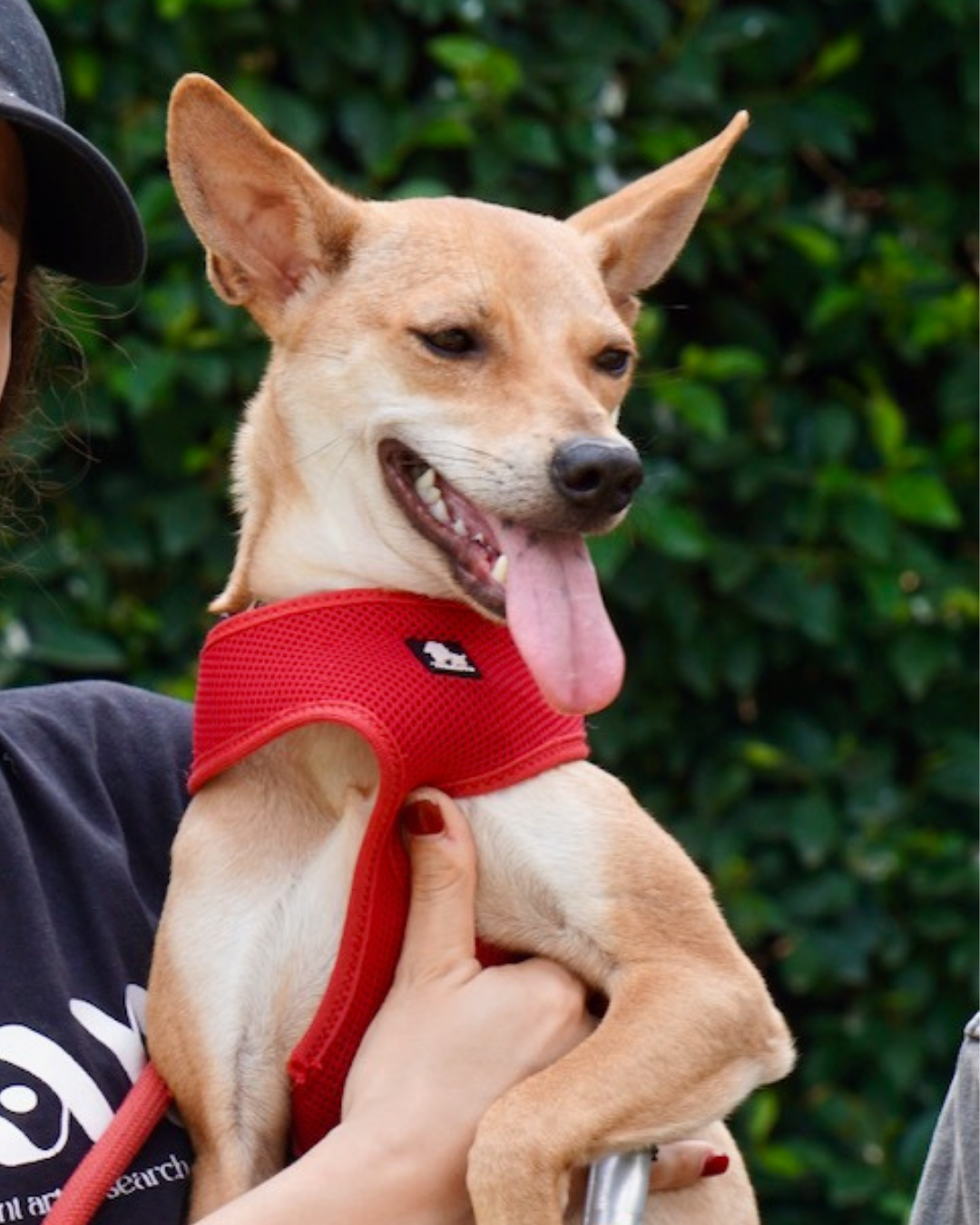 Grace is one of three sisters rescued from a horrific dog meat slaughter facility in Ben Tre, just outside Ho Chi Minh City. Cramped in a small filthy cage, these puppies had never known warmth or kindness; just fear, starvation, and neglect. Thankfully, a rescue team arrived just in time to save them from a tragic fate. After rescue, they were rushed to the vet where they were treated for severe parasites, diarrhea, and malnutrition- all very dangerous for such young puppies. Now safe at our shelter, Grace is thriving. She is gaining weight, developing confidence, and learning from our older dogs and kind volunteers how to live a life filled with care and love. She’s blossoming into a kind, affectionate pup who adores gentle cuddles and watching the world go by.