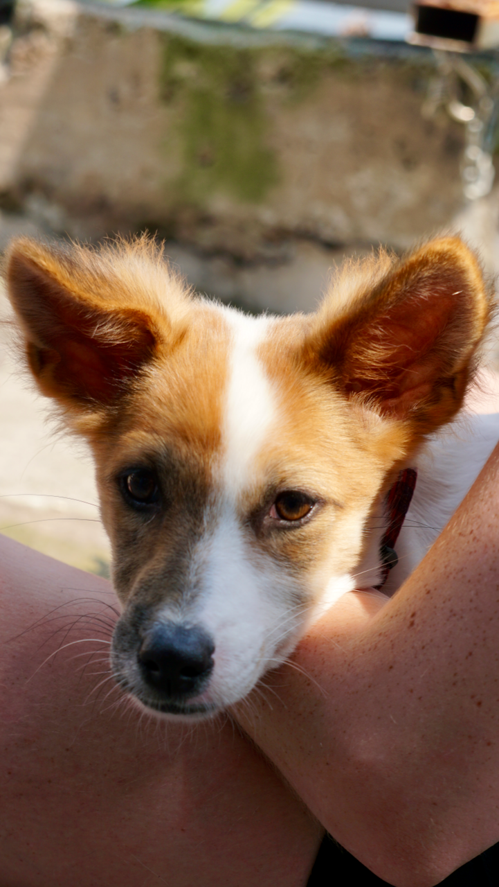 She enjoys gentle play and loves playing catch and fetch indoors, which has been a great way for her to burn off energy in a positive and fun way. Latte is sweet, smart, and learning more every day any family would be lucky to have her.β