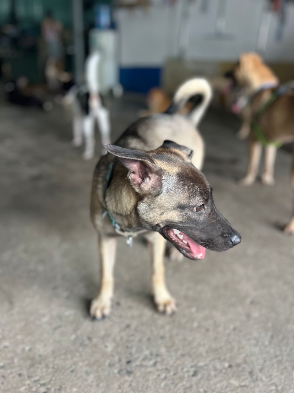 Now a few months old, Shaq has already captured the hearts of everyone at the shelter with his gentle spirit and expressive eyes. His unique coloring and sturdy build give him that classic “teddy bear pup” look. He’s playful, calm, and just the right amount of curious.